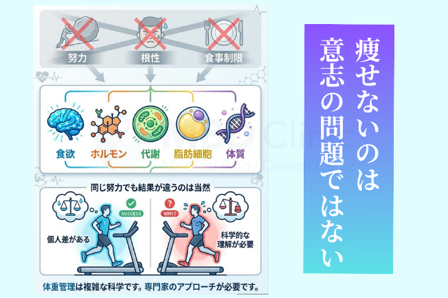 - 痩せにくさの要因を、医学的に評価します。