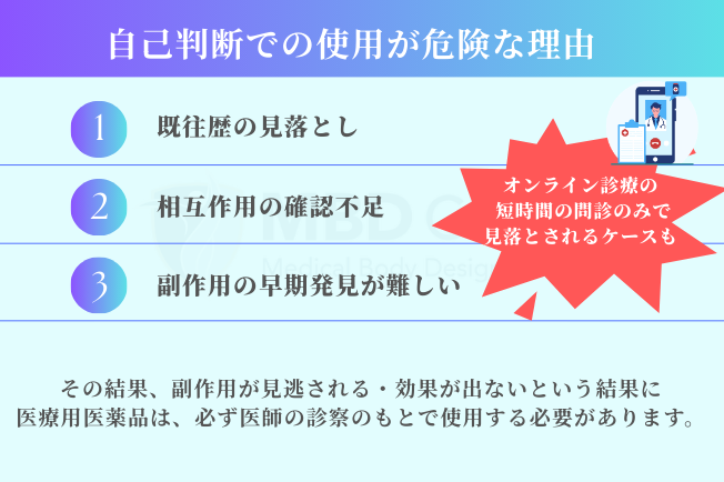 私たちは、 簡易的な問診のみでの安易な処方が広がる現状に懸念を抱いています。